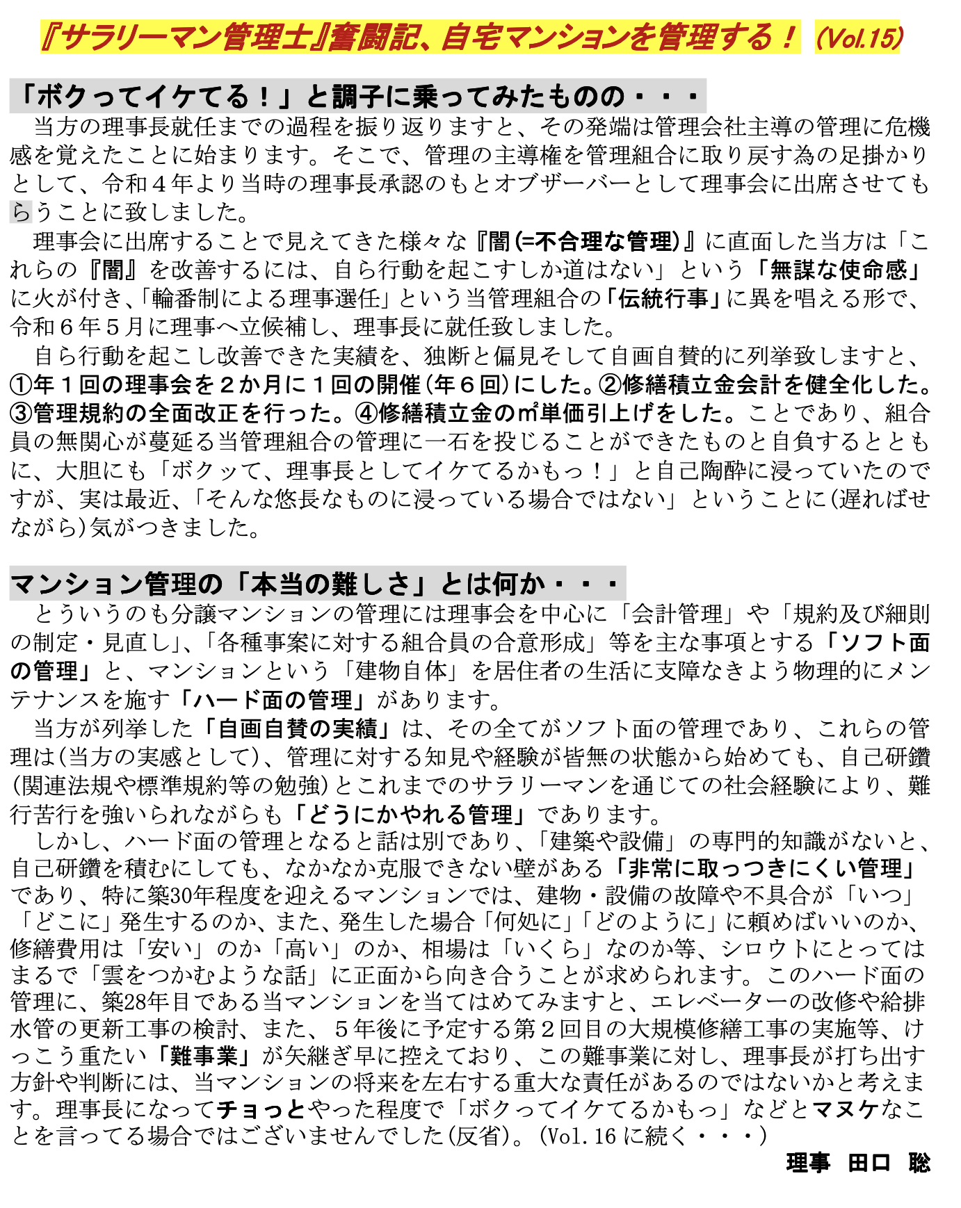 ・・・管理会社の変更や大規模修繕に関する内容をはじめ、日常的な管理上の問題など、多岐にわたる相談対応を行っています。🔸 支援事業 ・・・管理組合(理事会)の要請がある場合には、出張による相談対応も行っています。利害関係者の対立が生じないよう注意しながら、管理組合内での支援とアドバイスをしています。 |