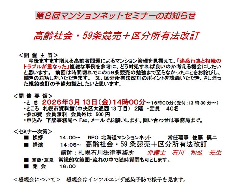 ご注意: 事前に「NPO事務局」へ価格確認をお願いします。 |