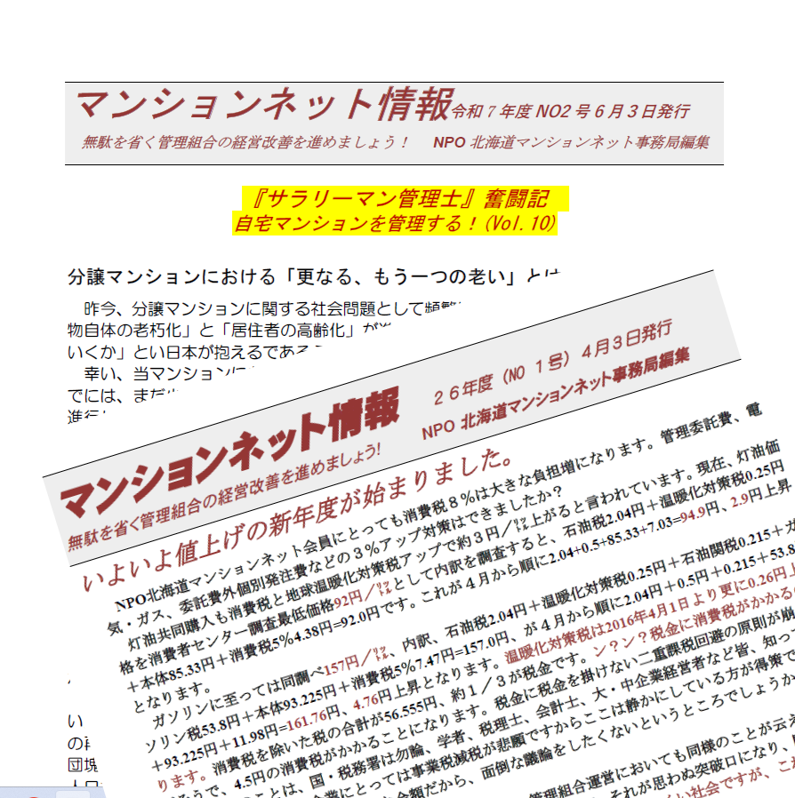 ■ 安定・安価な灯油調達の取り組み 当法人では、公正で客観的な情報提供の一環として、参加する会員マンション管理組合が連携し、そのスケールメリットを活かして灯油を安価かつ安定的に調達する共同事業を推進しています。 価格決定に当たっては、札幌市から毎月公表される「灯油の市場価格帯(札幌圏)」を基に、納入業者と詰めの交渉を通じて、できる限り「安価な価格」での購入を目指しています。 昨今、灯油価格が高止まりするなか、安心・納得の価格での安定供給をめざしています。当北海道マンションネット会員であれば事業参加が可能です。 詳しくは「北海道マンションネット事務局」にご相談ください。 ■ 昨年度の実績(2024年度) ア)参加管理組合数:36管理組合(前年度 35組合) イ)年間給油量(合計):約1,400キロリットル(同 1,350キロリットル) ウ)1組合あたりの平均給油量:約39キロリットル(同 38キロリットル) エ)年間給油量(合計):約1,400キロリットル(同 1,350キロリットル)