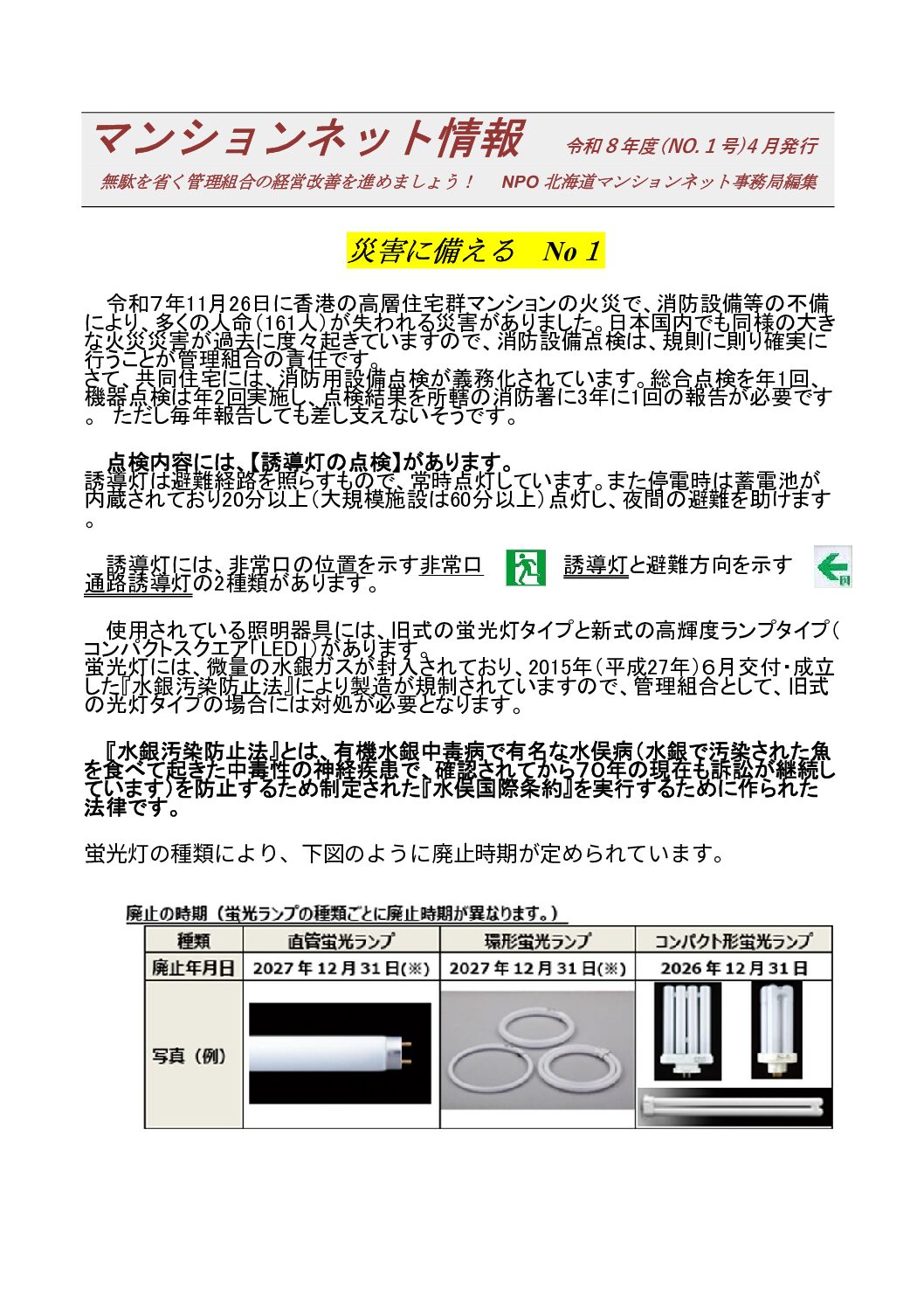 LED電球ほか。政府は、すべての一般照明用蛍光灯の製造・輸出入を28年1月で禁止する政令改正(26年1月24日。「段階的に」順次施行)を閣議決定しました。 発光ダイオード(LED)照明の普及が世界的に進んでいることを踏まえ「水銀に関する水俣条約」において、蛍光灯の製造と輸出入は26年1月から順次禁止になり ます。 28年以降も、製品の継続利用や在庫品の販売は可能ですが、国は発光ダイオード(LED)照明への計画的な切り替えを呼びかけています。 |