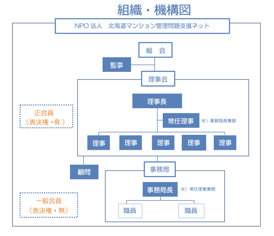 (法人の正式名は、「特定非営利活動法人 北海道マンション管理問題支援ネット」です。)
